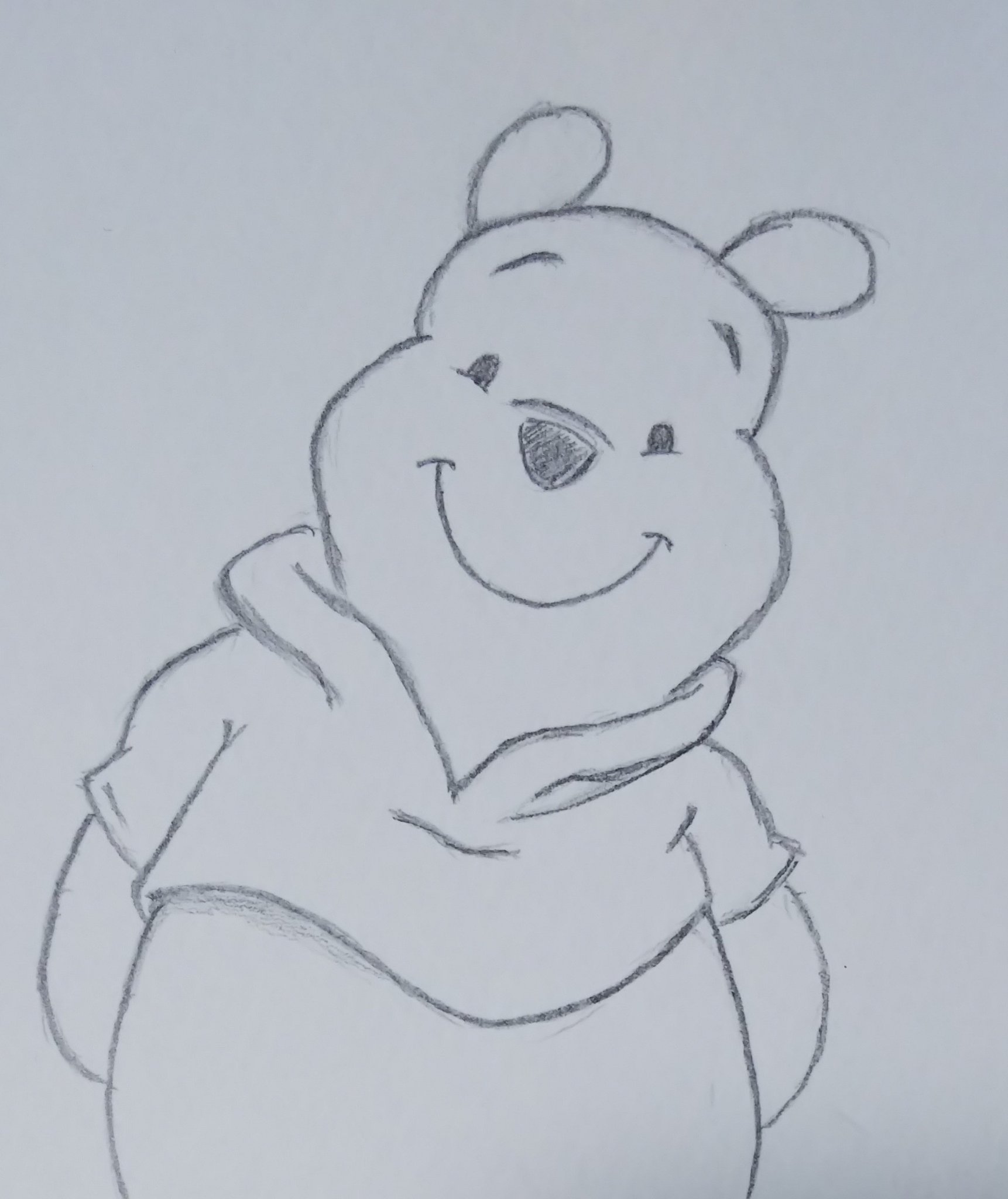 Twitter 上的 さっさん 34日目 今日もプーさんを正面で描いた まあ模写なんですけど まあなんだろ ふっくら感は出せたんじゃないかな もっと綺麗に描くために 今後は線の太さと濃さ そんで極力一本の線に見えるように描いていこう 絵描きさんと繋がりたい